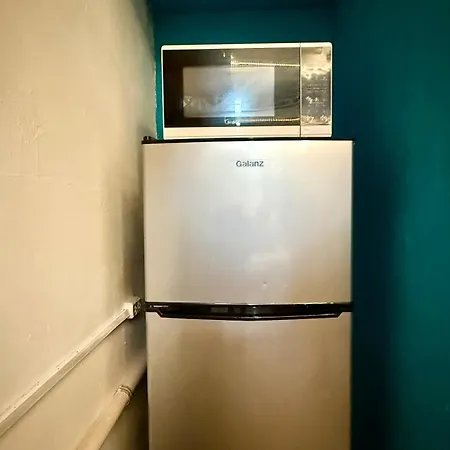 Az ingatlanhoz tartozik teakonyha, felszerelve hűtővel és konyhai edényekkel.
